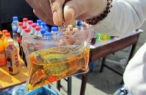 It was really difficult to read this news article today without wanting to throw something. Chinese sidewalk vendors have recently put onto the market live animals sealed in plastic bags which you can attach to your keys. SERIOUSLY?!